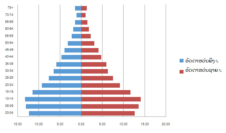 ໝາຍເຫດ: ອັດຕາການເອື່ອຍອີງຂອງປະຊາກອນໃນໝວດອາຍຸ 0-14 ປີ ແລະ ປະຊາກອນອາຍຸ 65 ປີຂຶ້ນໄປ ທຽບໃສ່ ປະຊາກອນໃນໝວດອາຍຸ 15-64 ປີ, (ໝາຍຄວາມວ່າ ຜູ້ທີ່ບໍ່ສາມາດ ເຮັດວຽກເສດຖະກິດ ຕໍ່ກັບຜູ້ທີ່ຢູ່ໃນເກນອາຍຸເຮັດວຽກ).